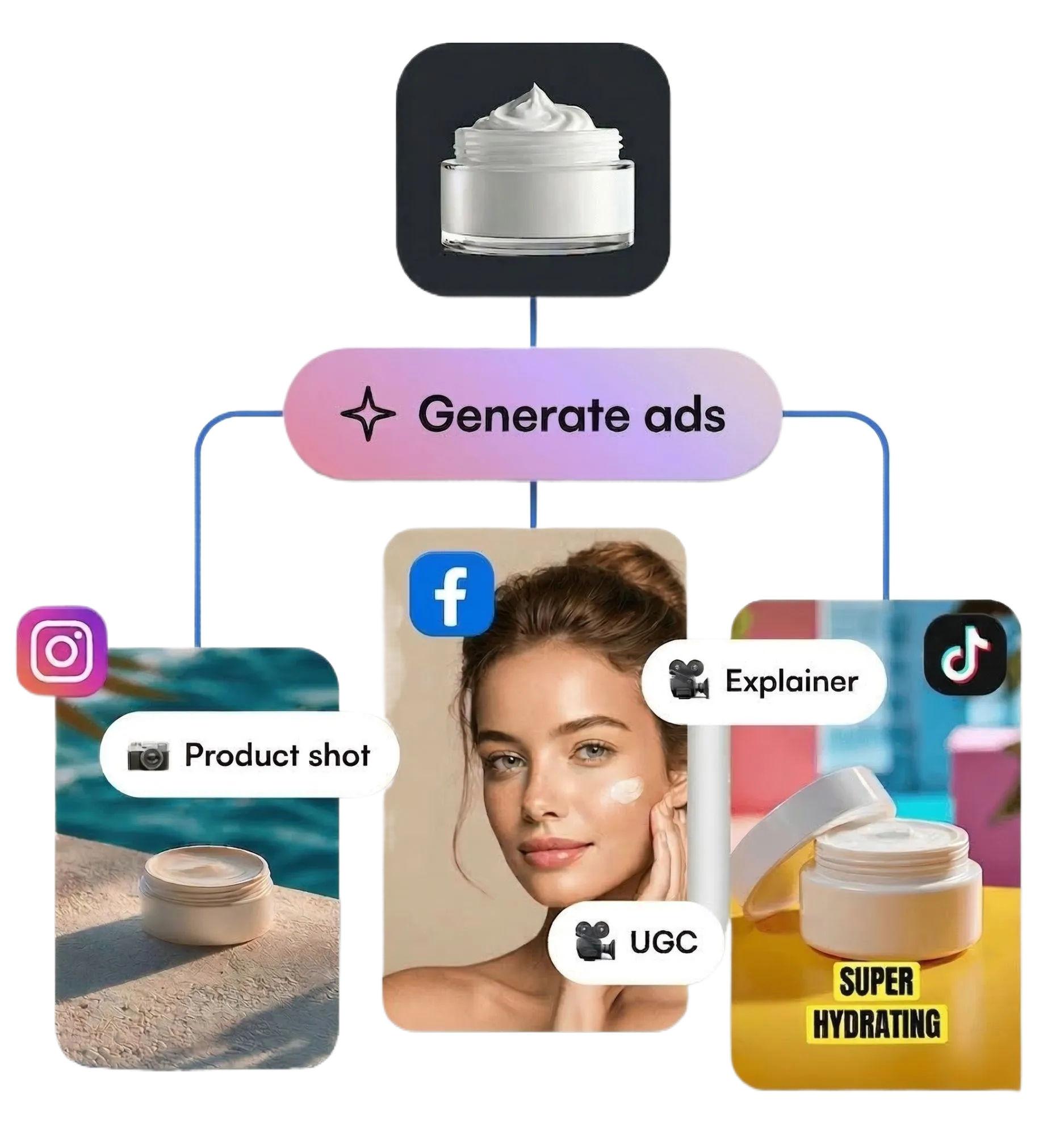 Turn product pages, images, and videos into high-converting ad creatives β ready to test, ready to launch.
